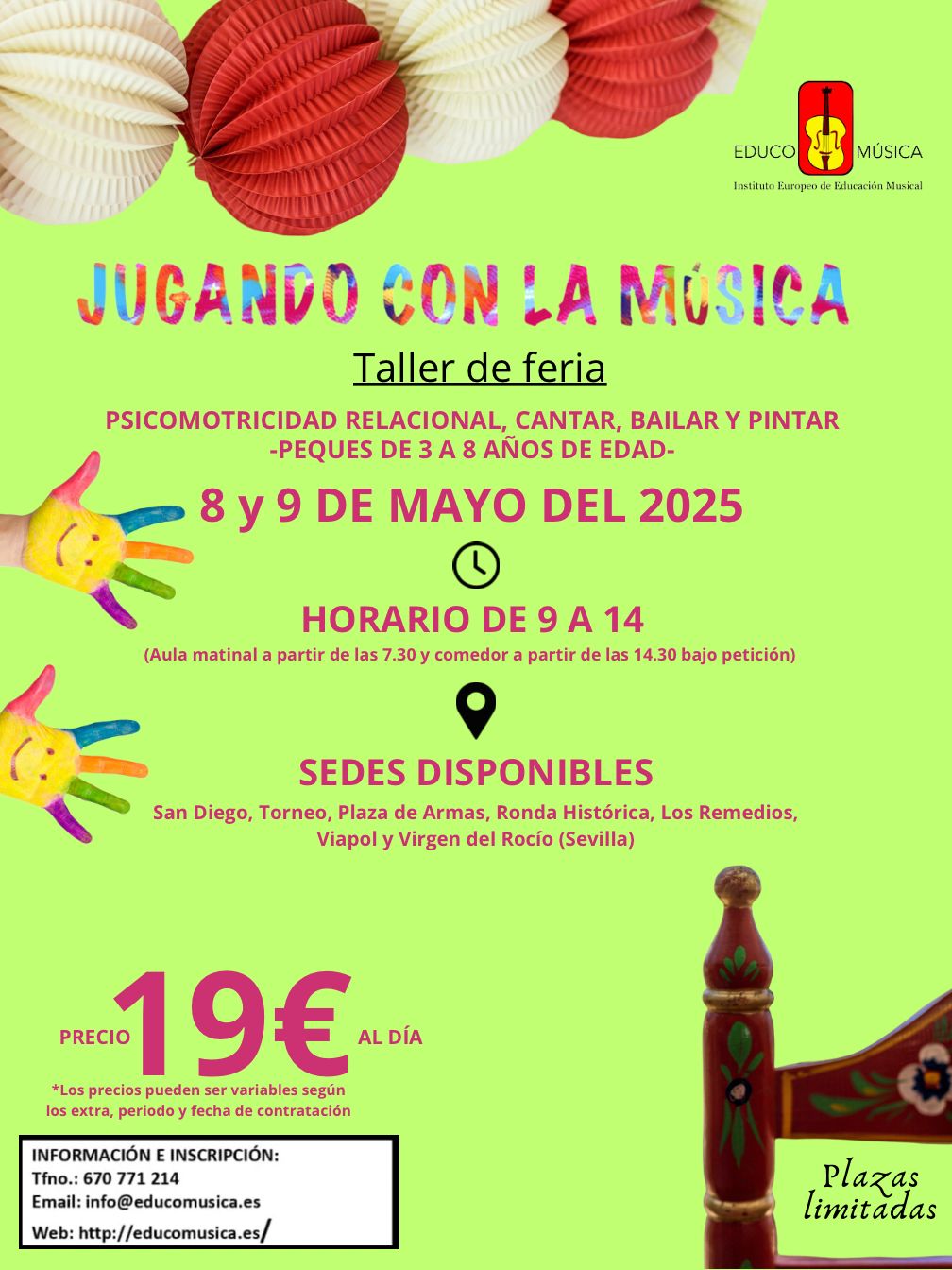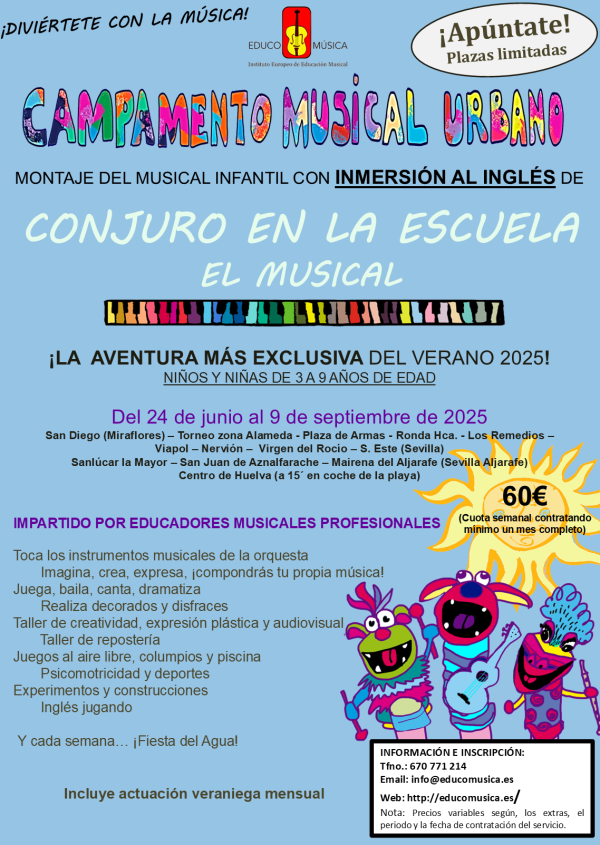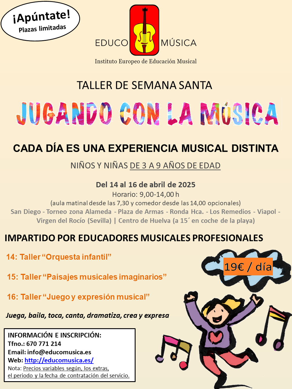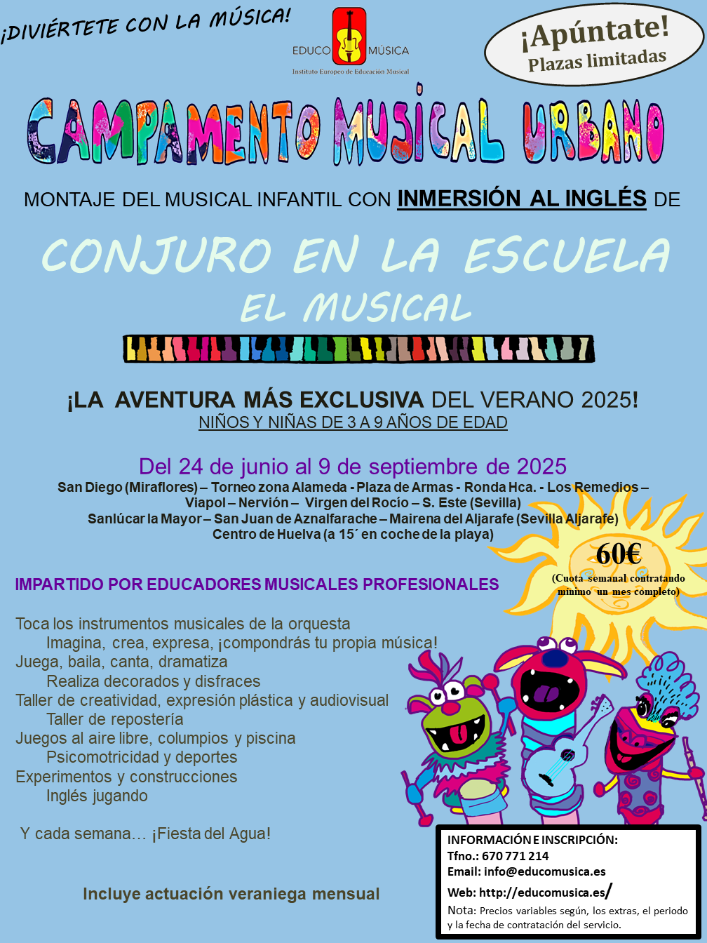 Se proponen los periodos de Navidad, Semana Santa, ferias, días sin cole laborables y verano. Como resultado, la Escuela de Verano de Educo-Música es el broche de oro de cualquier curso escolar.