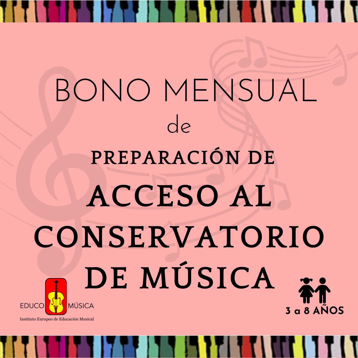 Bono mensual para la materia de “Preparación del acceso al nivel I del Conservatorio de Música”, clase grupal con sesión semanal de 1 hora. Educo-Música.