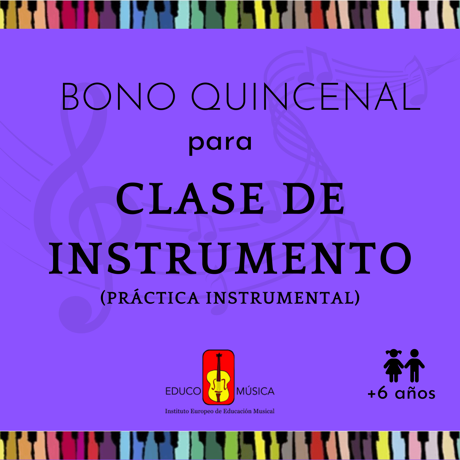 Bono quincenal para recibir “Clases de un Instrumento”. Son clases de práctica instrumental, que incluyen nociones de lenguaje musical. Educo-Música.