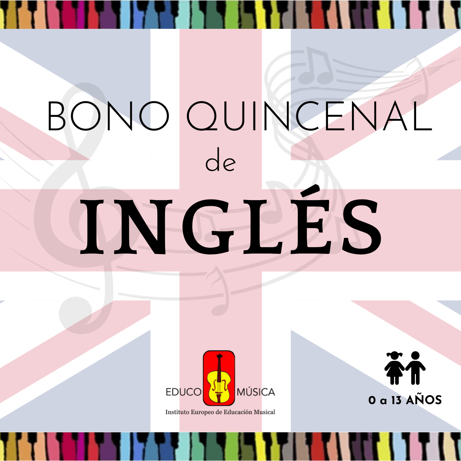 Bono quincenal ~ Inglés 0-13 años. Enseñar inglés a los niños desde los primeros momentos y practicarlo de modo rutinario les proporciona un buen apoyo para que progresivamente vayan aprendiendo el idioma, ayudándoles a familiarizarse con él. Educo-Música.